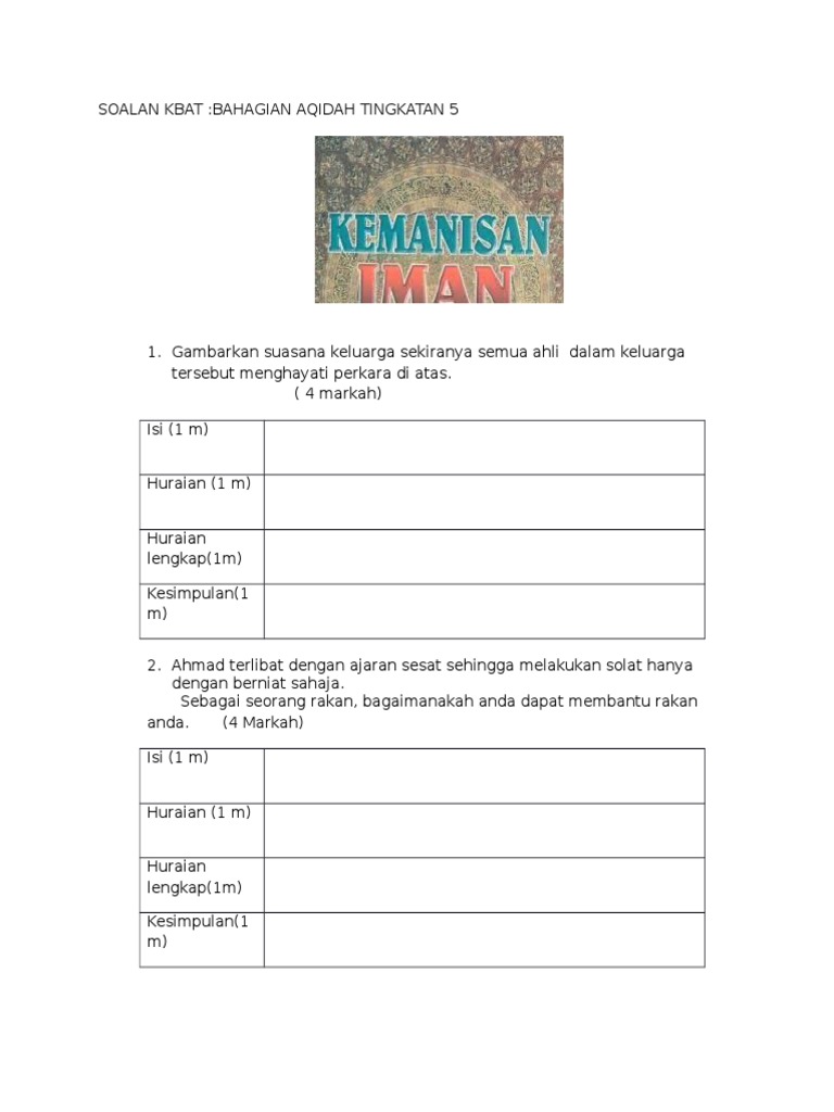 Soalan Kbat Aqidah Tingkatan 5 2016