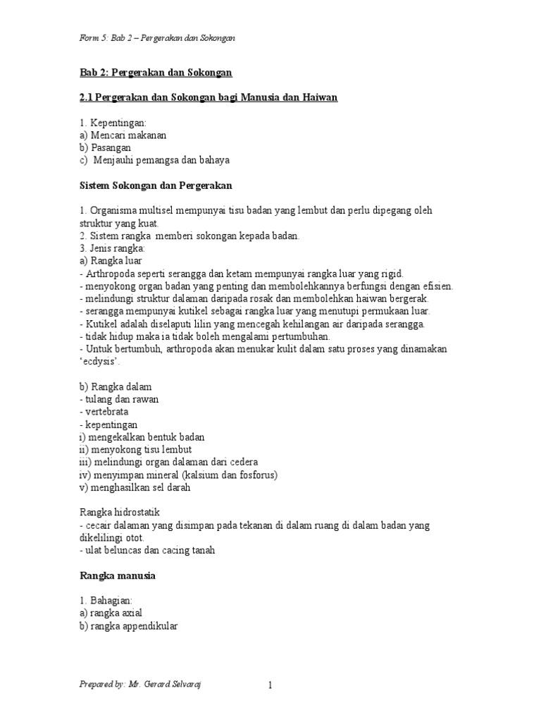 Biologi Tingkatan 5 Bab 2 Pergerakan Dan Sokongan Doc Document