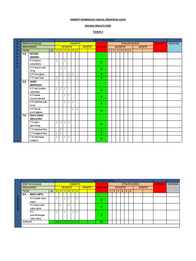 Contoh Jadual Spesifikasi Ujian Bahasa Melayu Tingkatan 5