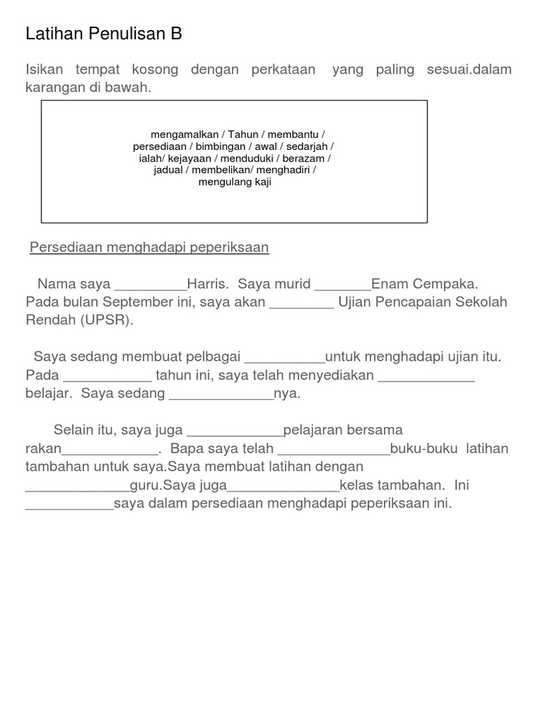Latihan Asas Menulis Karangan Isi Tempat Kosong