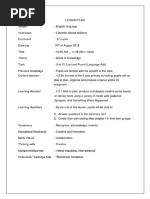 Lesson Plan Year 5 Kssr Lost And Found