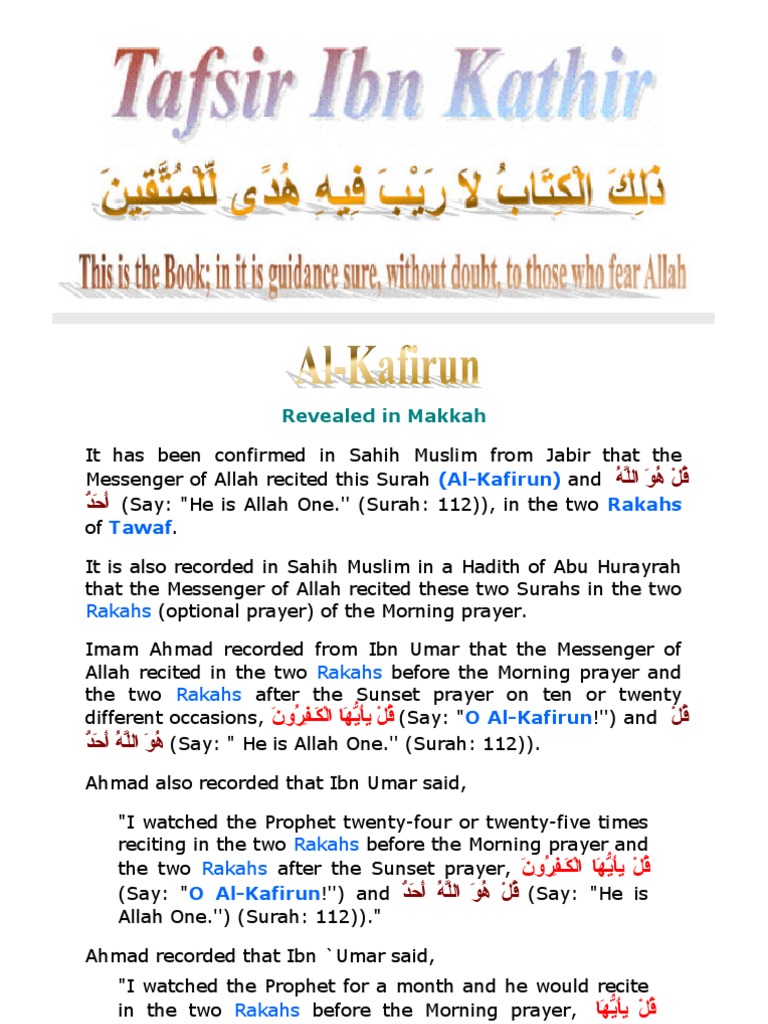 Tafsir Ibn Kathir 109 Kafirun Prophets And Messengers In Islam God In Islam