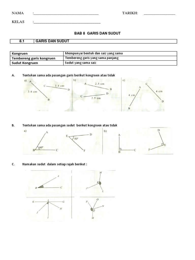 Latihan Topikal Garis Dan Sudut Ii Serta Jawapan