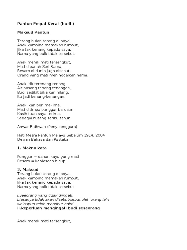 Pantun Empat Kerat Budi Ppt Download