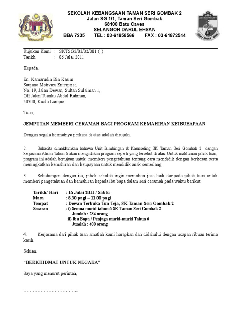 Surat Jemptn Penceramah Program Keibubapaan 2